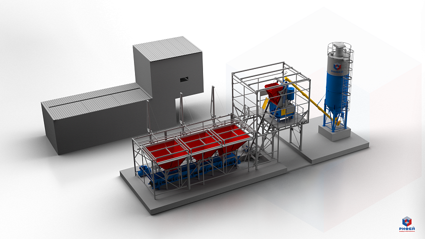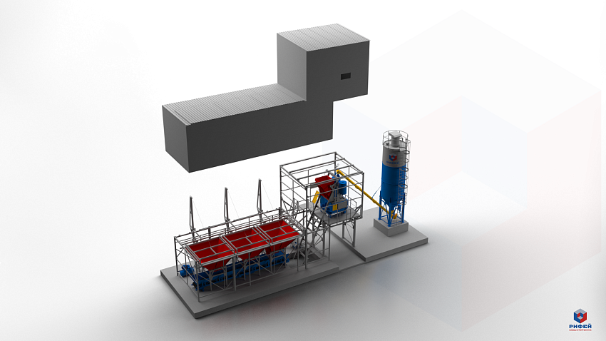Всесезонный бетонный завод "Рифей-Бетон-Зима-60" зимнее исполнение, производство товарного бетона и (или) раствора 60 м3 в час как в ручном, так и автоматическом режиме.